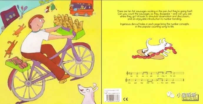 Ten Fat Sausages,十根肥香肠,这本绘本收录在廖彩杏书单第七周中,大名鼎鼎的Child's Play儿歌洞洞书中也有收录,绘本的风格幽默,句型简单、重复、押韵。