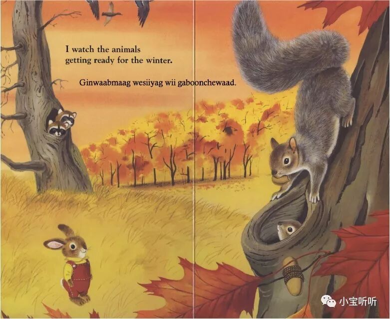 我看到动物们忙着准备过冬。