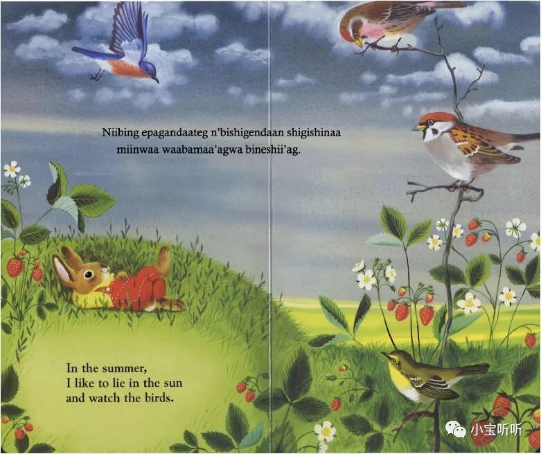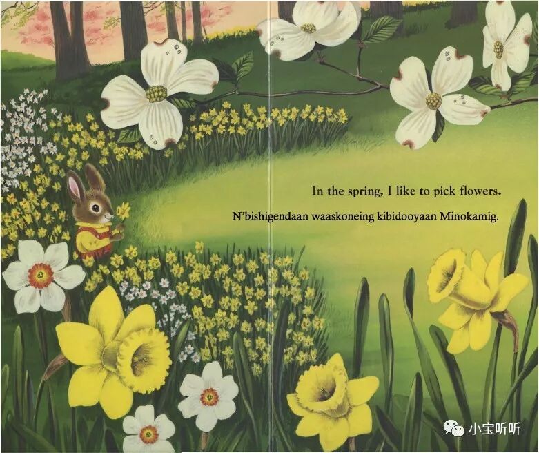 绘本特色:以一只可爱的小兔子为主角,带给孩子亲切之感。唯美的画风,亮丽而舒缓的色调,为孩子完美地展示了自然四季更迭之美,亦能充分激发孩子的想象。而且书的图片很大,视觉即视感强,而另有纸板书的设计,更适合小宝宝翻阅。简单易懂、朗朗上口的文字,适合小宝宝初期的英语启蒙哦。