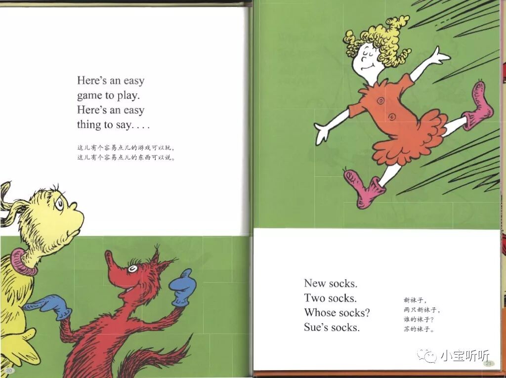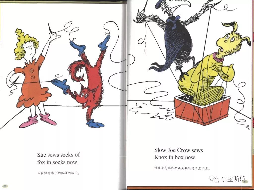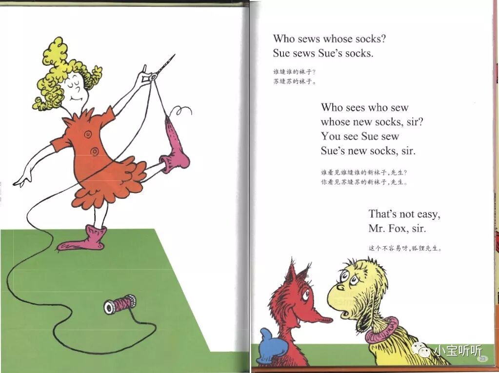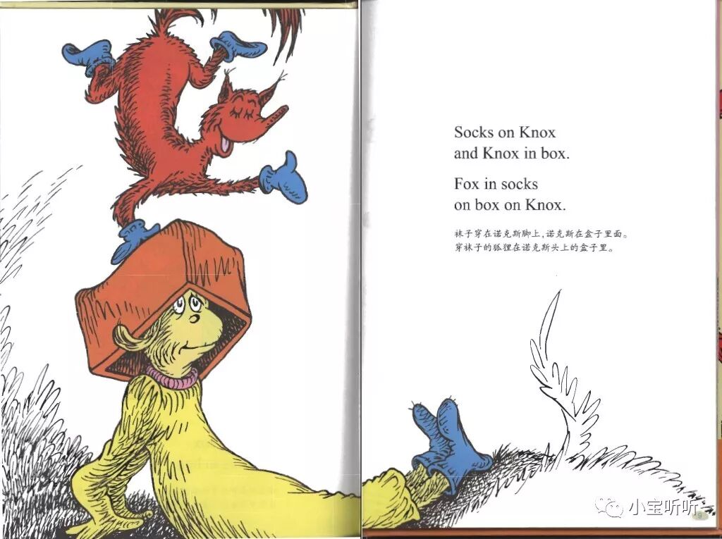 《Fox in socks》是苏斯博士给大家带来的一个绕口令的经典绘本,文章相当有趣,并且他会给你的舌头带来麻烦哦!
