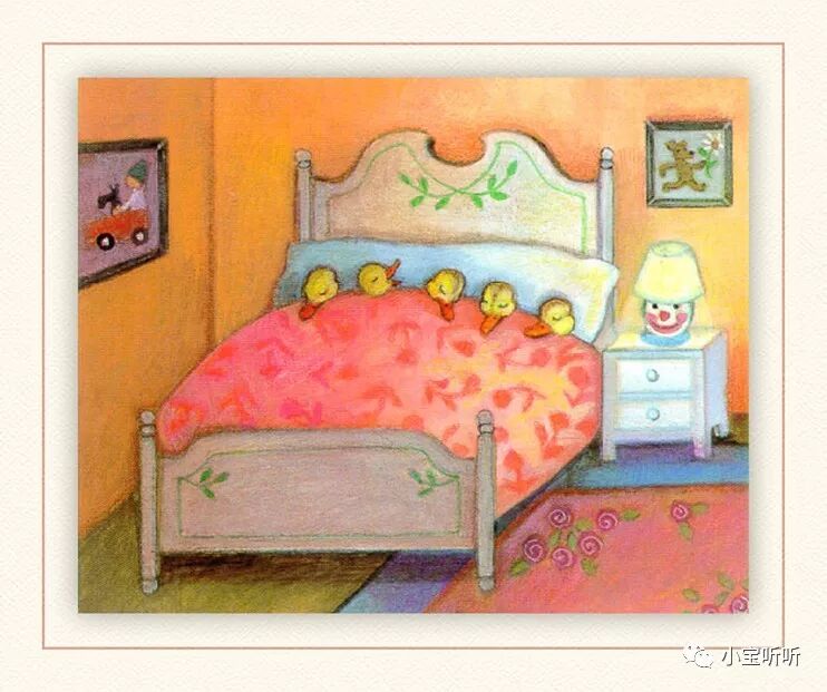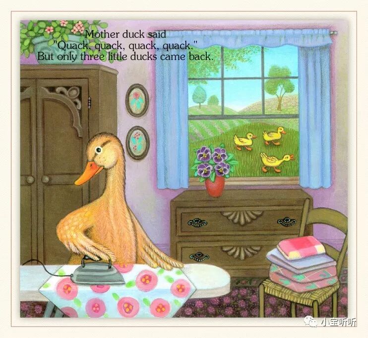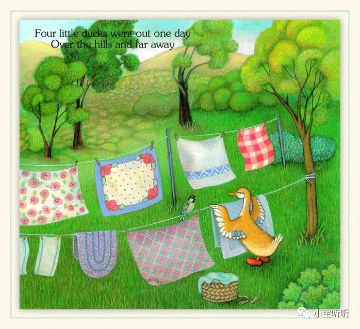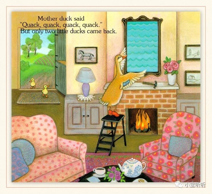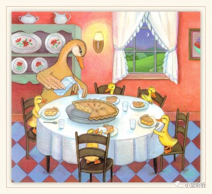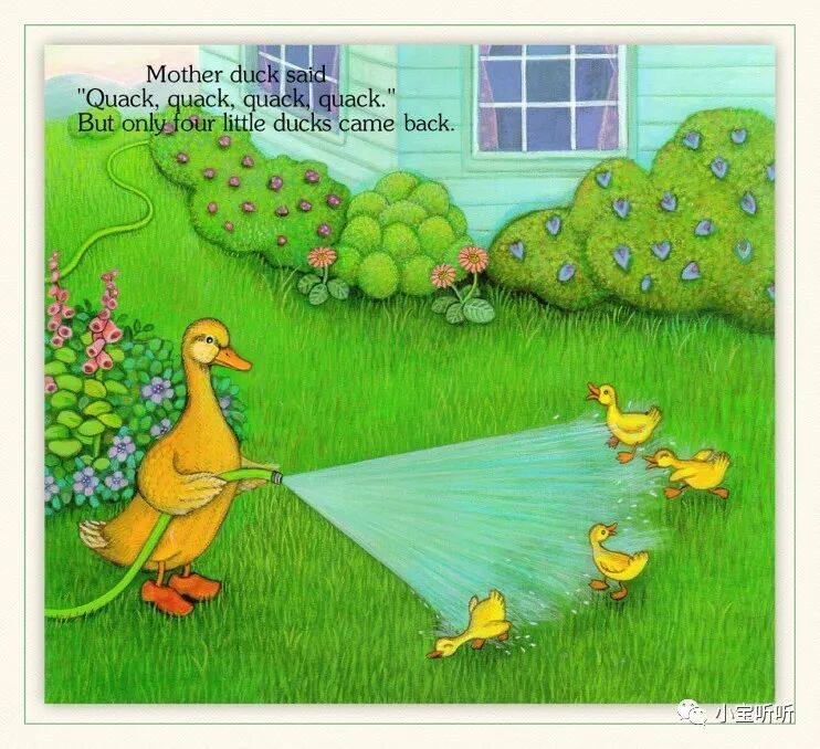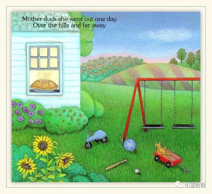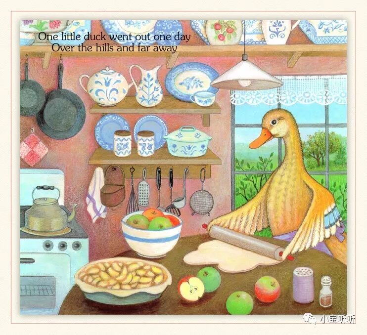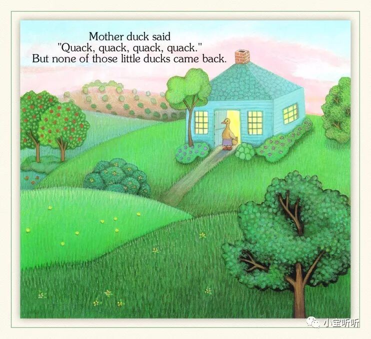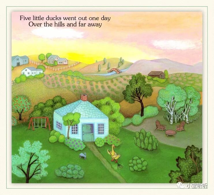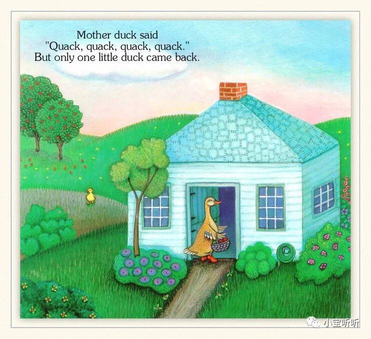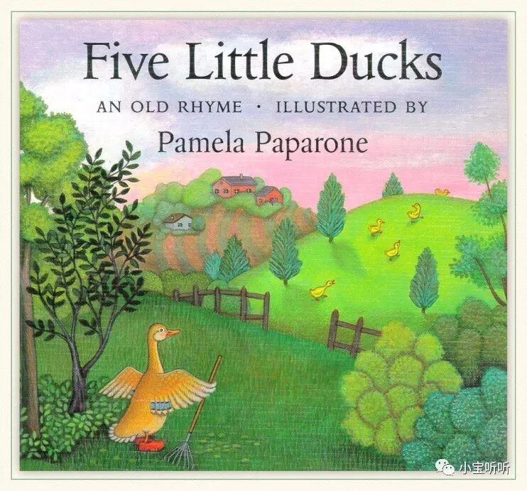 《Five little ducks 》五只小鸭子源于一首英语童谣,配上Pamela Pararone的画,展现了一幅亲情脉脉、趣味横生的乡村家庭景象。