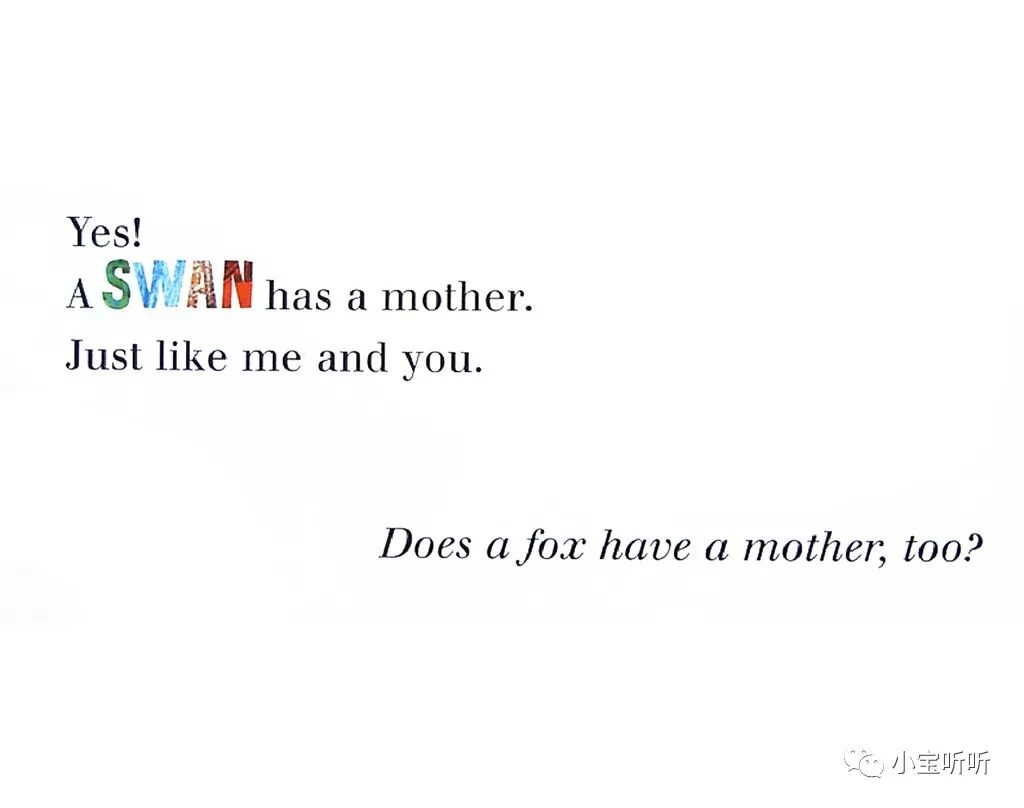 对!天鹅有妈妈,就像我和你一样。