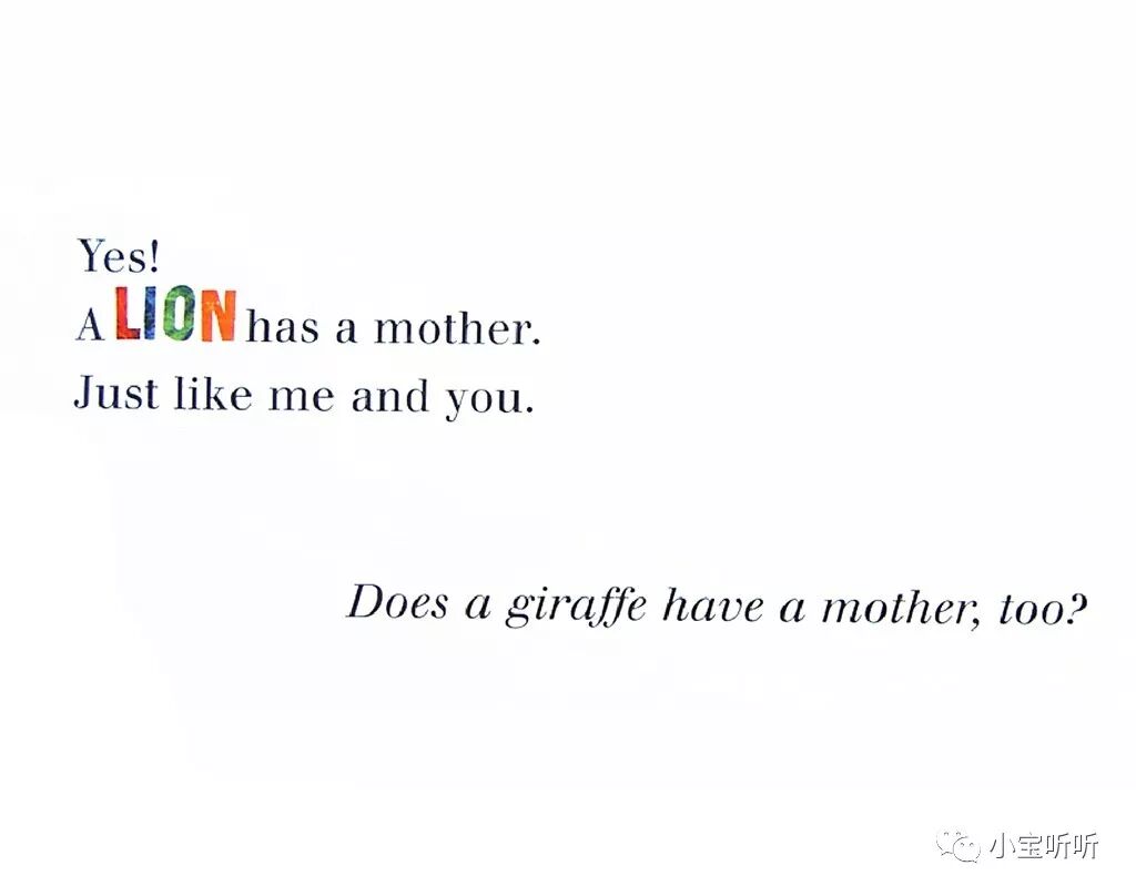 对!狮子有妈妈,就像我和你一样。