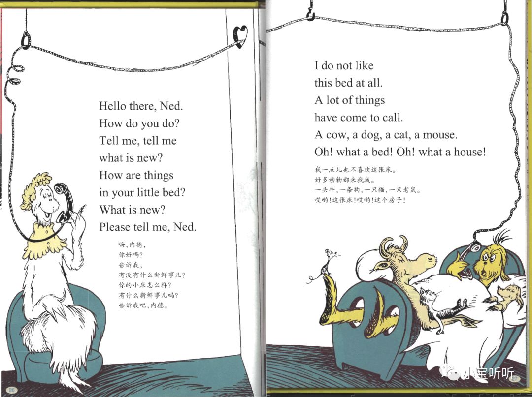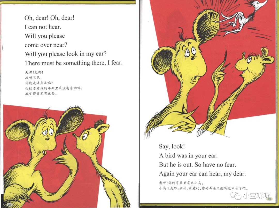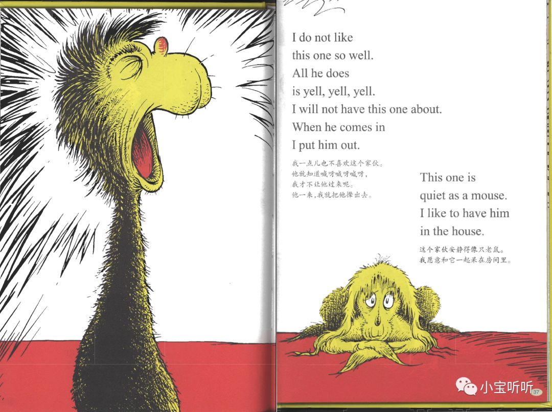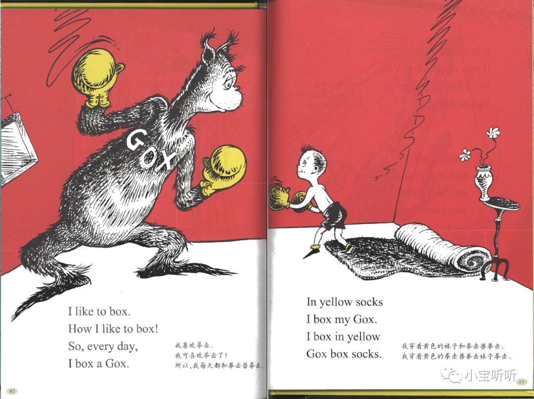 这本绘本一贯延续了苏斯博士的作风,押韵词汇出奇得多,而且故事幽默,构想奇特,词汇句子精磨,,搞怪无厘头,让孩子大爱呀。