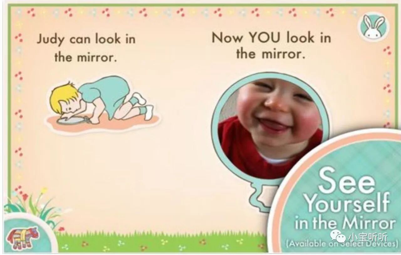 (右图中真有一面镜子呢,宝宝一定很好奇镜子中的自己。放心,这面镜子不是玻璃的,不会有危险啦。)