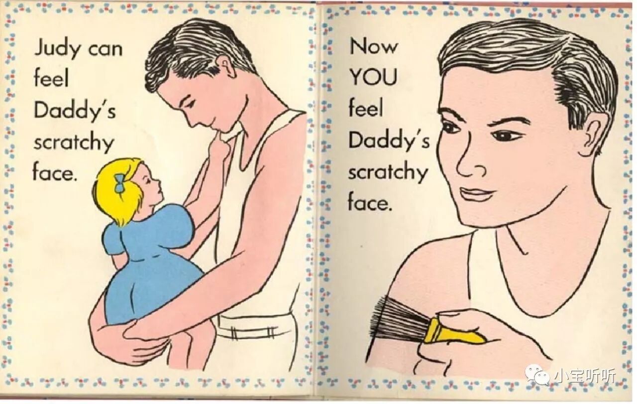 Judy能够摸摸爸爸刮过胡须的脸。现在你也来摸摸