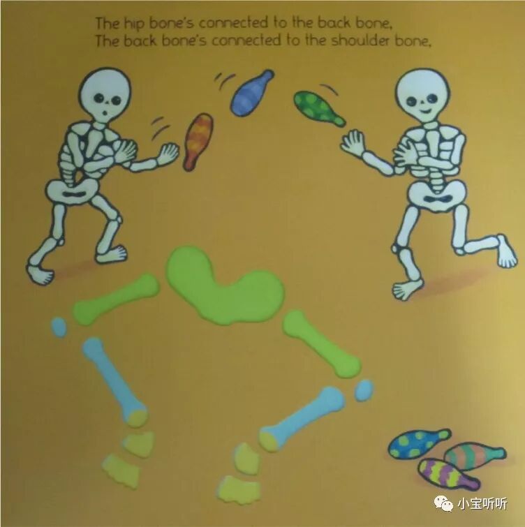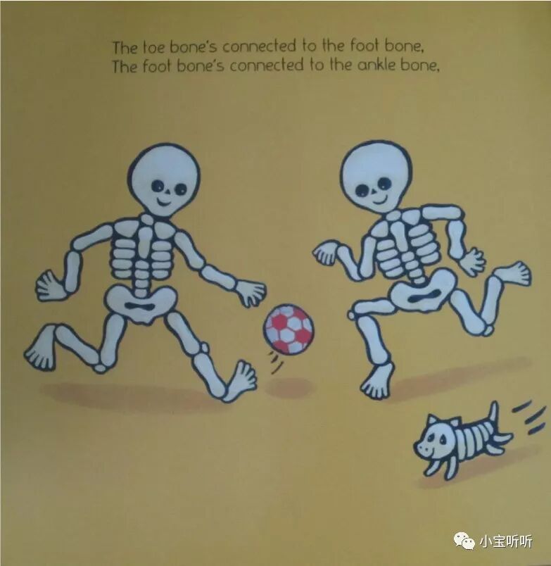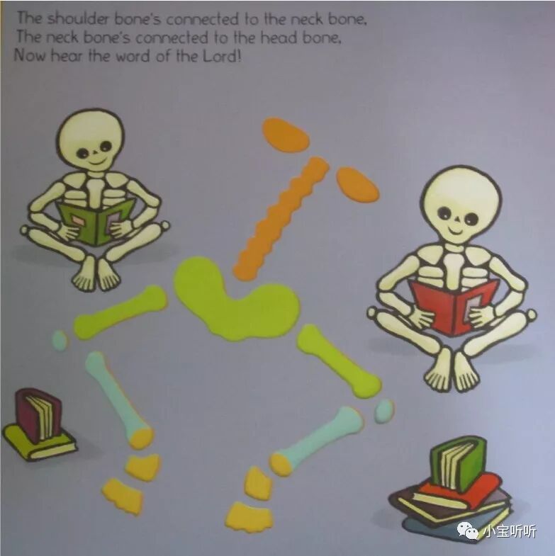 故事里面的内容是讲骨架的结构和名称,通过一定的顺序,孩子可以逐渐了解到身体的结构。