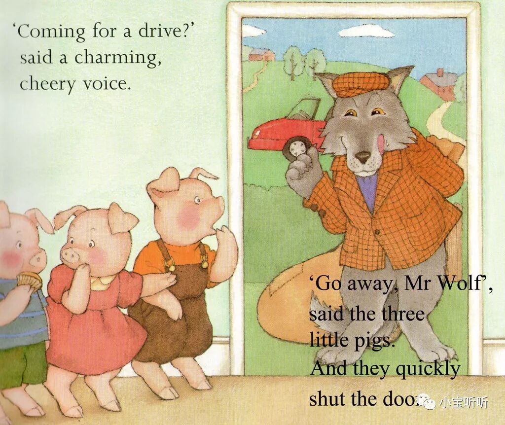 “Go away, Mr. Wolf", said the three little pigs.And they quickly shut the door.