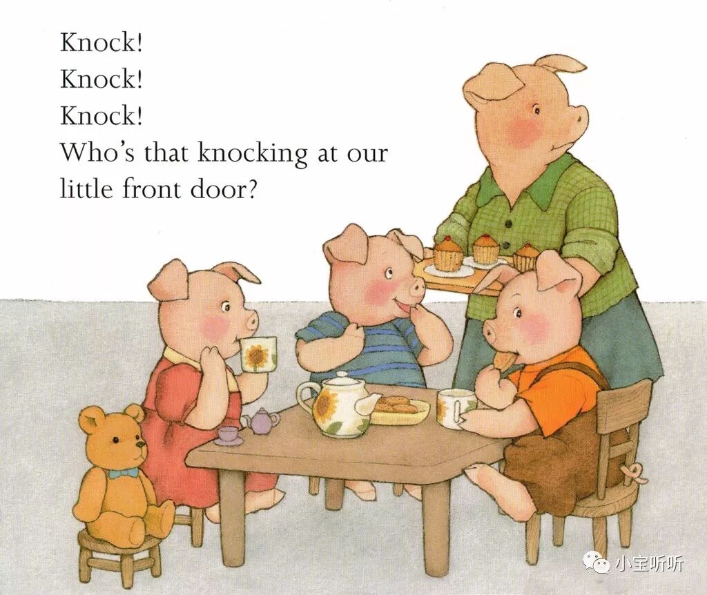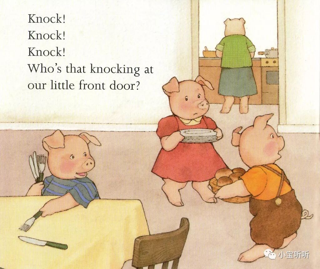 《Go Away Mr Wolf !》被称作是外国版的“小兔乖乖”,并且是经典的三只小猪智斗大灰狼。通过这个绘本,小朋友们可以学到一些日常生活用语。互动性很强,适合亲子扮演,一个扮演小猪,一个扮演大灰狼,就可以开始场景游戏了,一边玩儿,一边就把故事里的句子掌握了,是磨耳朵的最佳读物!