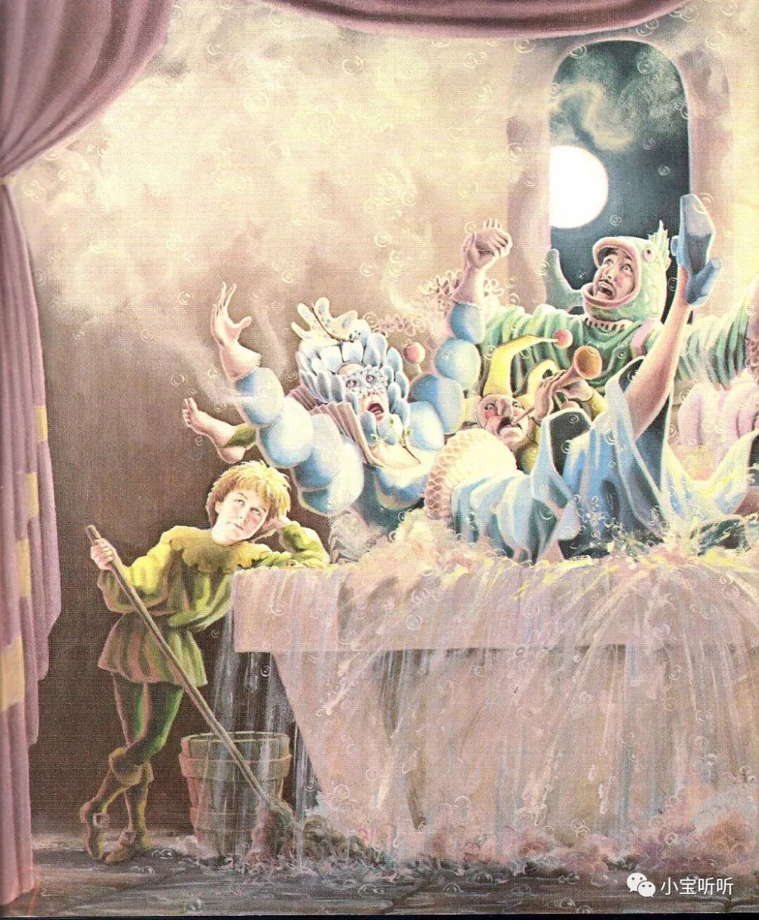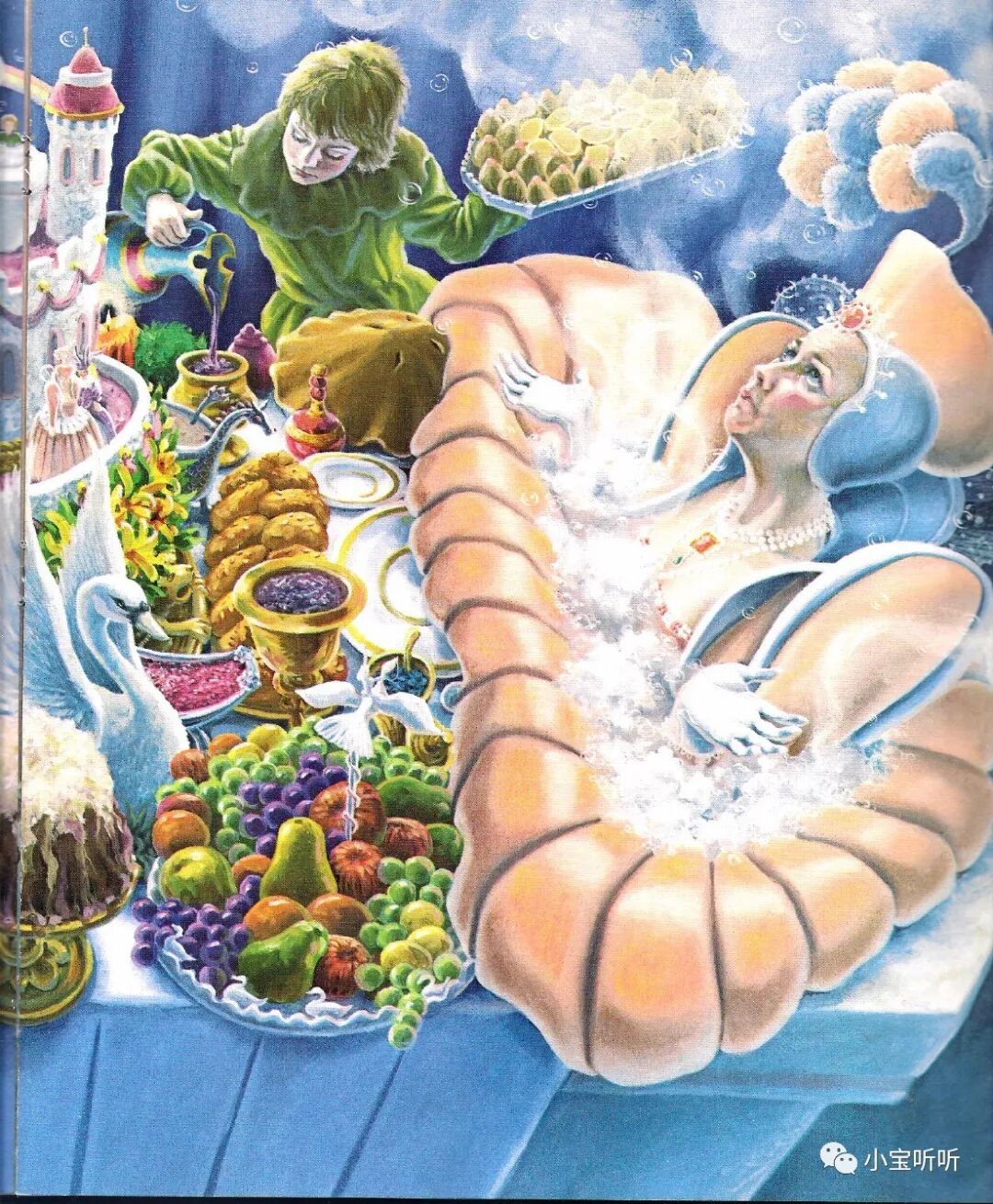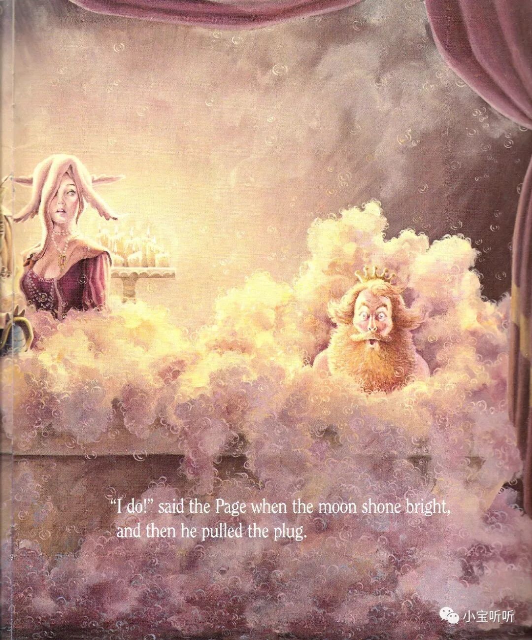 绘本主要讲述了从前的一个国王,特别喜欢泡澡,而且泡在浴缸里就不肯出来了,负责伺候他的侍从只好四处求助。然后每个人都说自己有办法,但都没法让国王从浴缸里出来。最后还是侍从想了个办法,国王才从浴缸里跑了出来,奇趣的构思,荒唐的画面,一起看看吧。