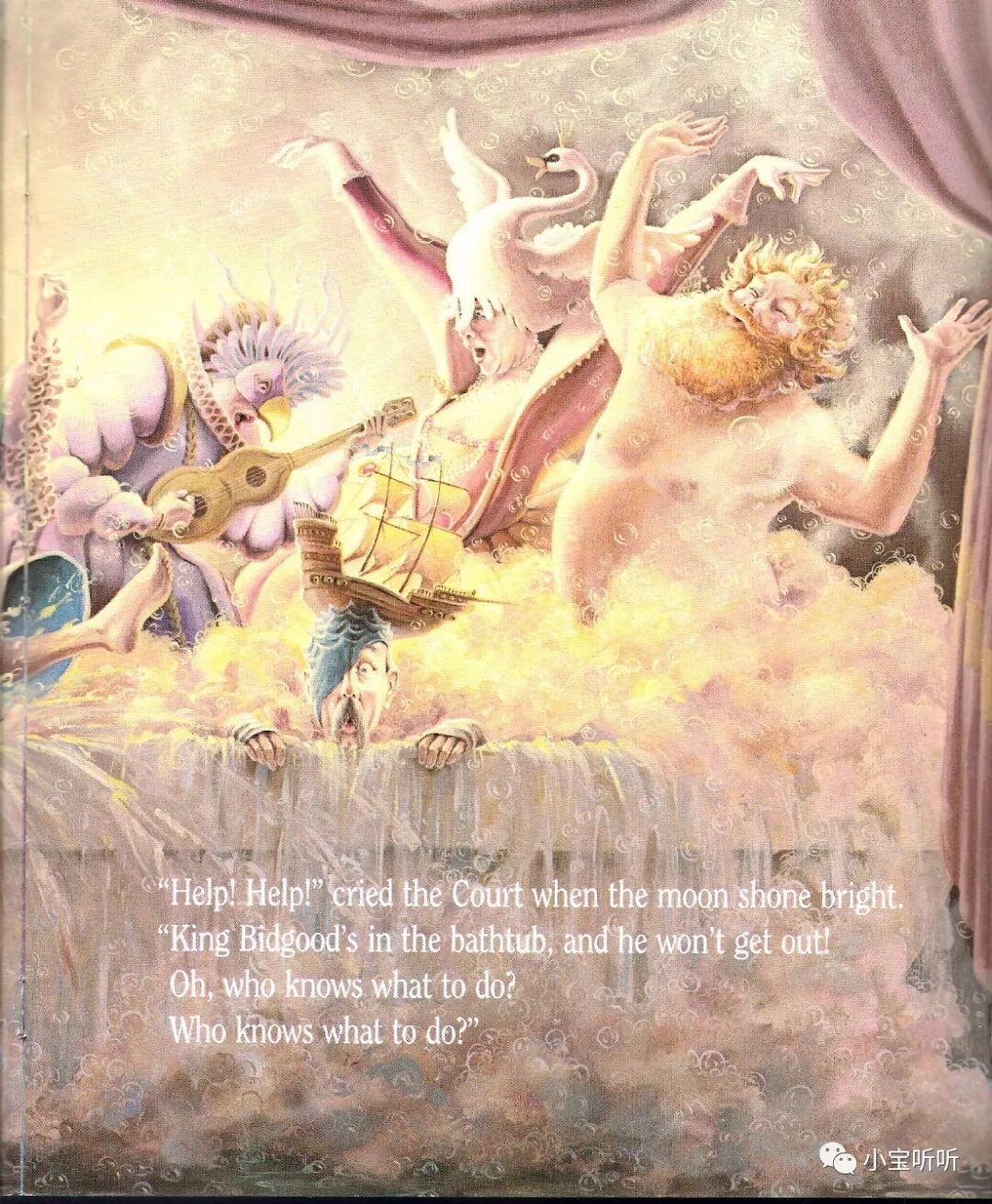 “国王一直泡在浴缸里,不肯起来,喂── 有谁知道该怎么办?”