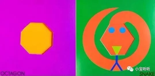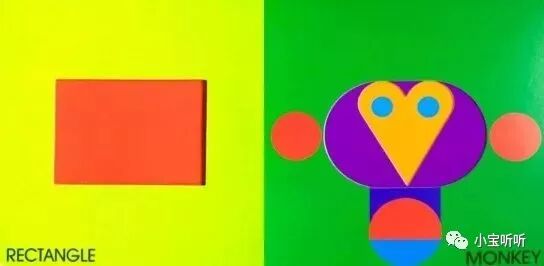 这是一本看起来简单到不能再简单的绘本,没有故事情节,也没有贯穿始终的人物,甚至连一个完整的句子都没有,就单靠几个不同颜色的镂空的形状,就组合成了一个个可爱的小动物。
