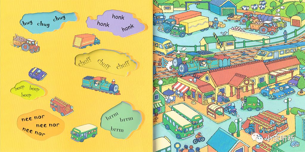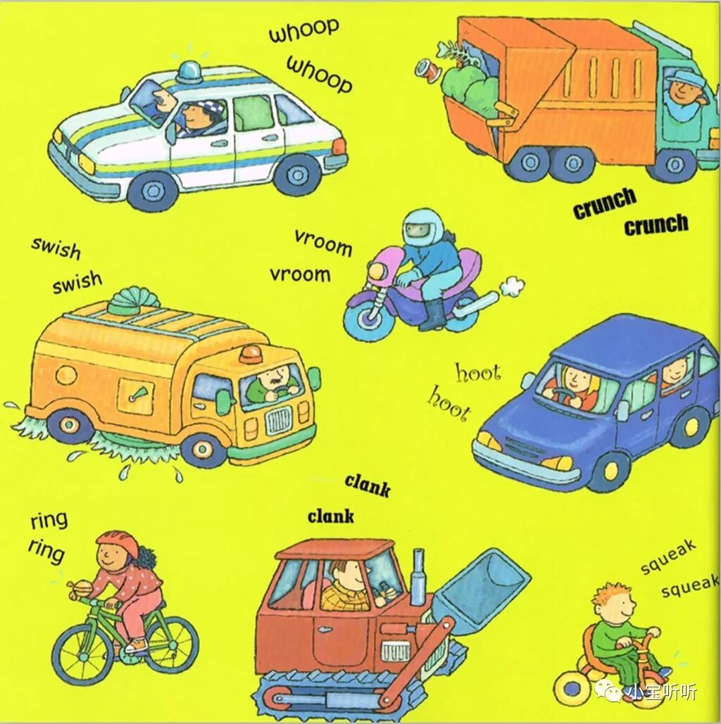 故事内容简单,交通工具的声音表现得惟妙惟肖,生动有趣的图画更紧紧抓住了孩子的目光,非常适合作为刚开始接触英文的入门书籍。