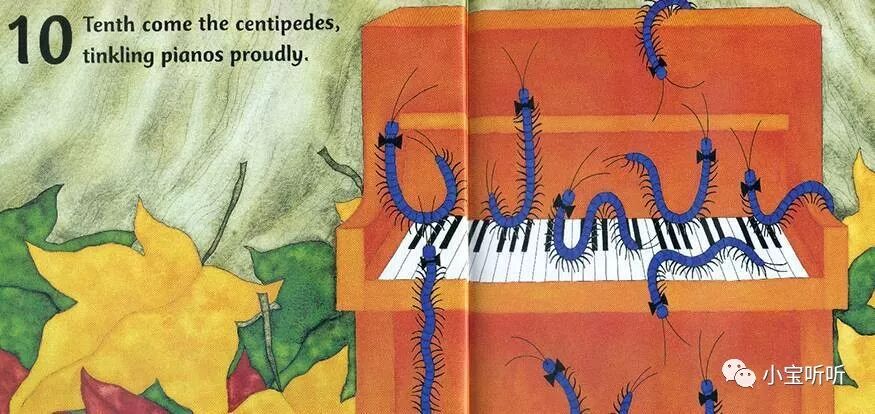 第十个出场的是(十条)蜈蚣们,叮叮当当得意扬扬地弹着钢琴。