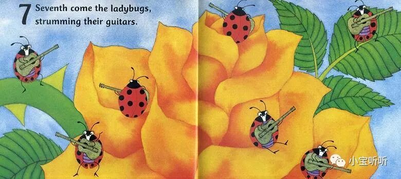 第七个出场的是(七只)瓢虫们,轻轻拨弄它们的吉他。