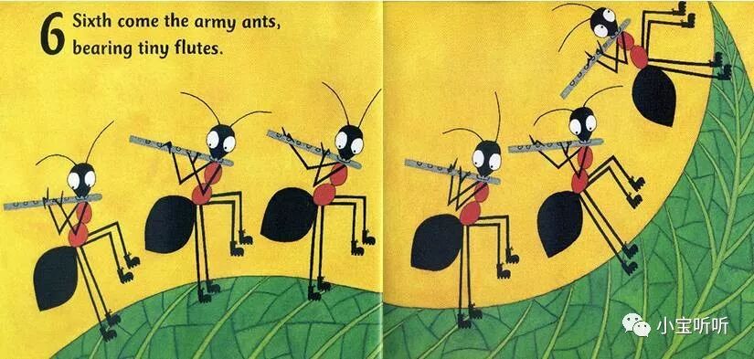 第六个出场的是(六只)行军蚁们,带着很小的笛子。