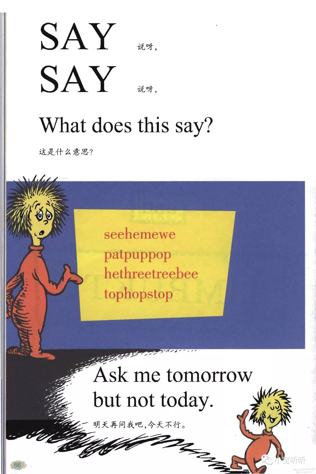 这本书是以有相同发音规律的单词和短句组成,孩子跟读一段时间后便可自主阅读,语言夸张滑稽,节奏感强,容易拼读,再配合拼读学习,相辅相成,对孩子的英文的启蒙提高能起到很大作用,我们一起学一学吧。