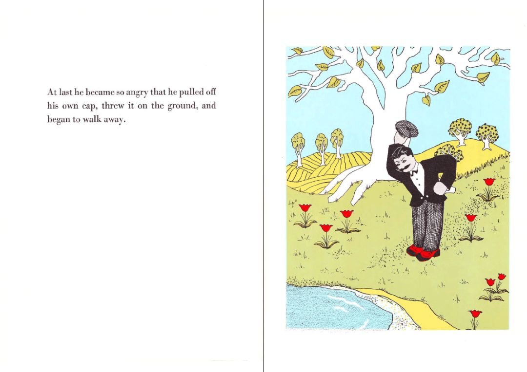 At last, he became so angry that he pulled off his own cap, threw it on the ground, and began to walk away.