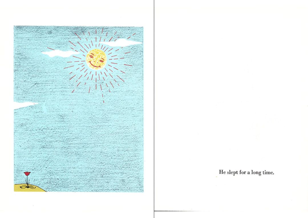 他走了好长时间,这时,他来到了一个大树底下。这真是一个休息的好地方,他想。