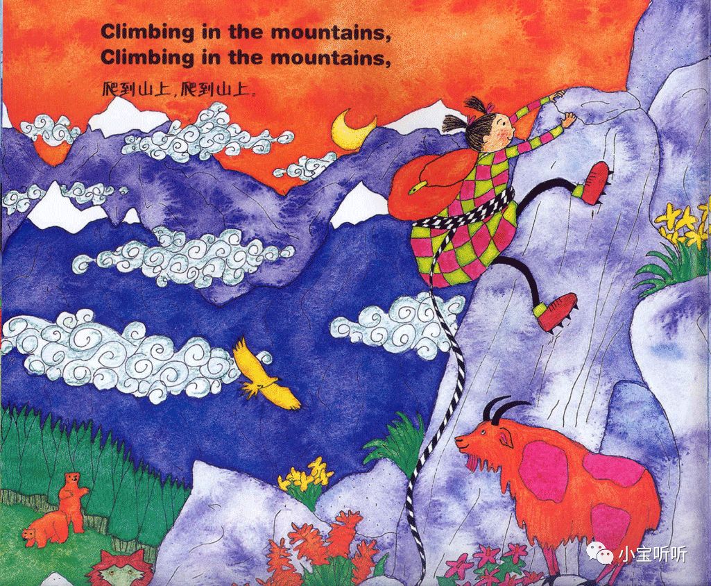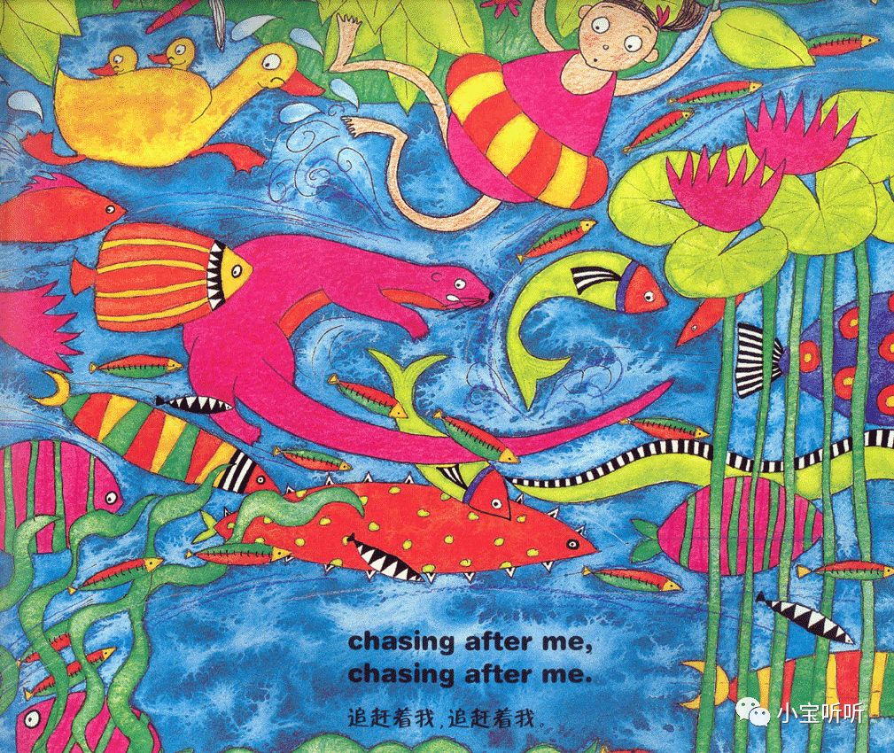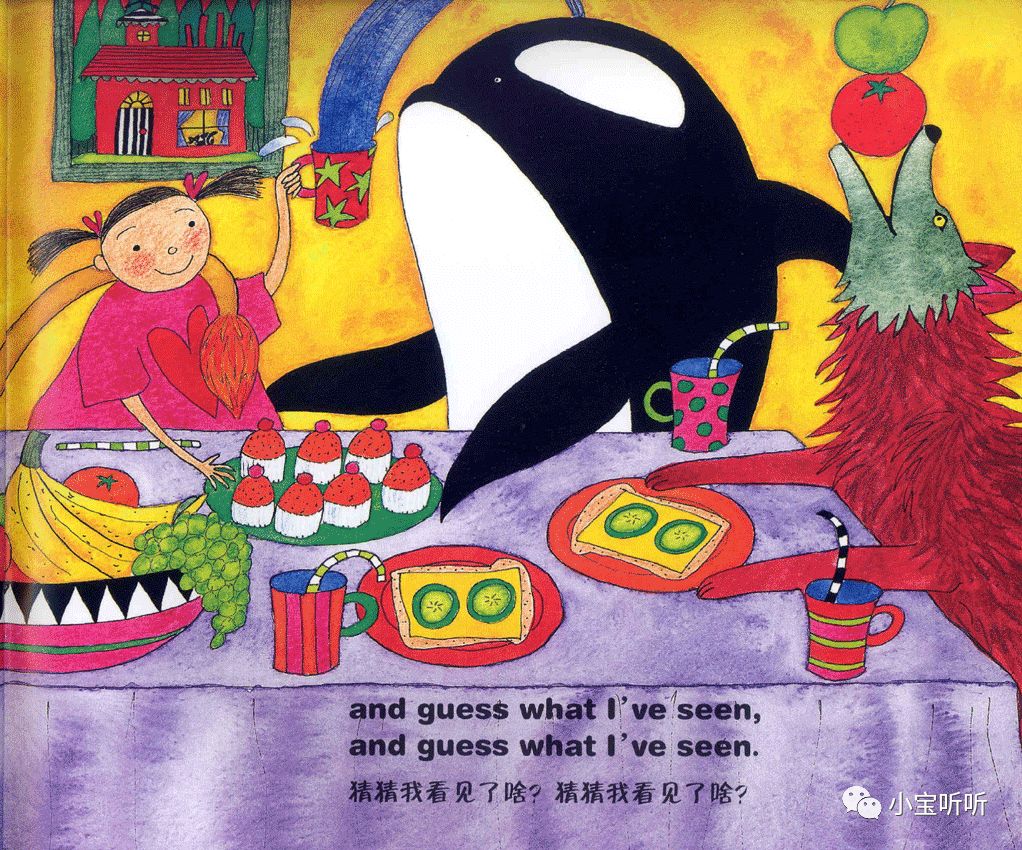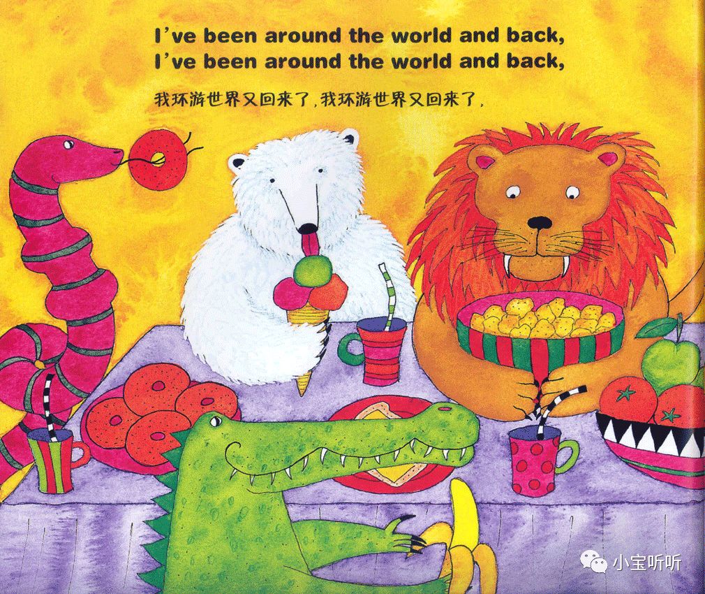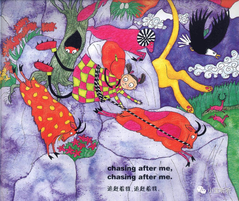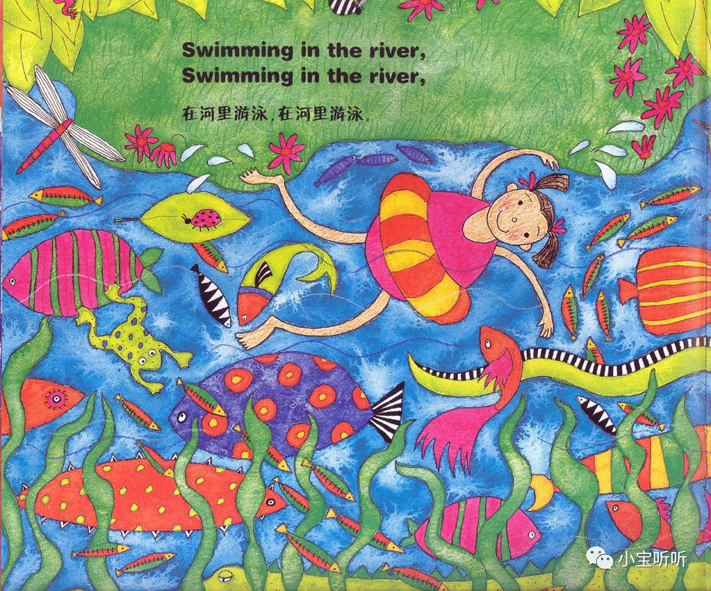 这是一本适合亲子边唱边跳的绘本,美美的画面,丰富鲜艳的颜色,好像一下子把我们带进童话世界呢。