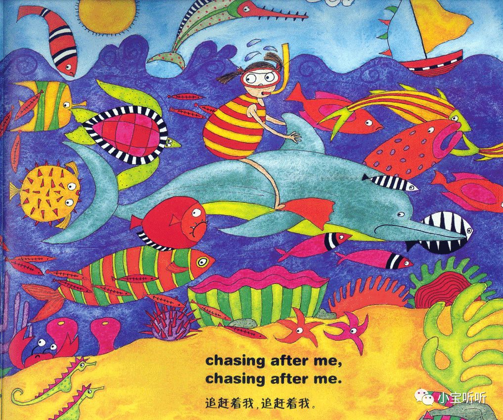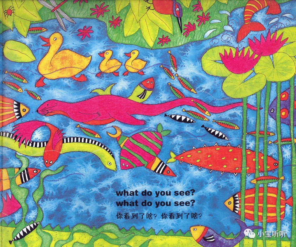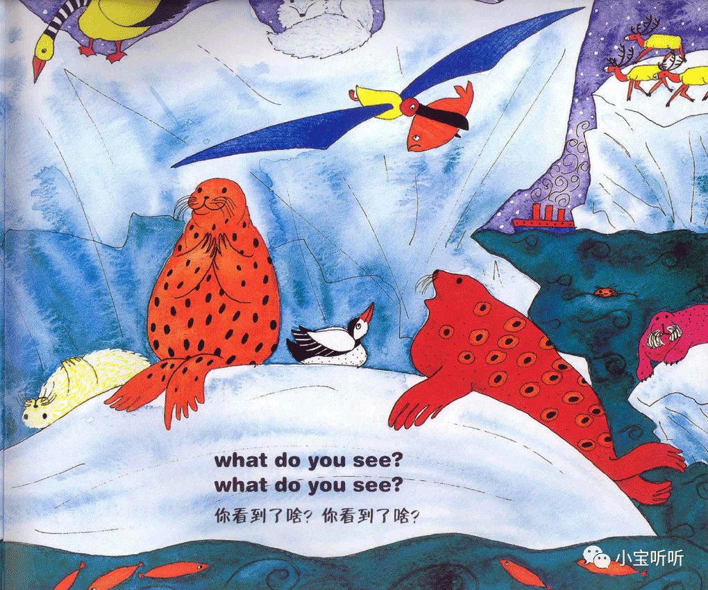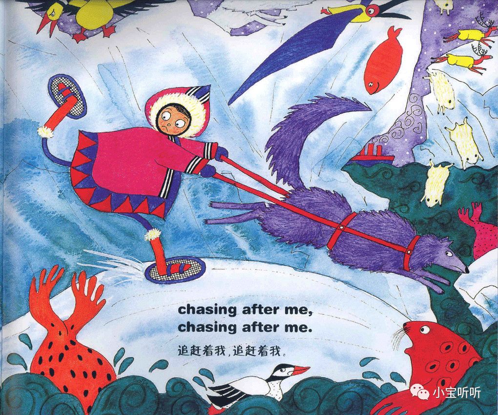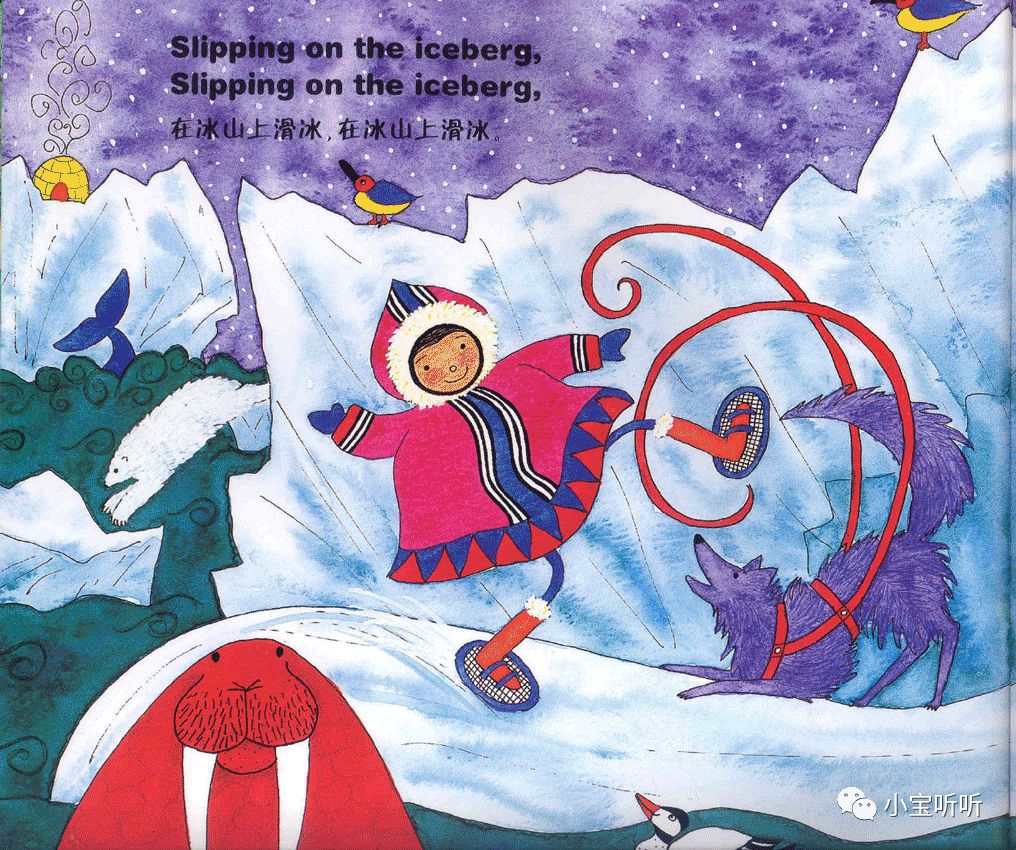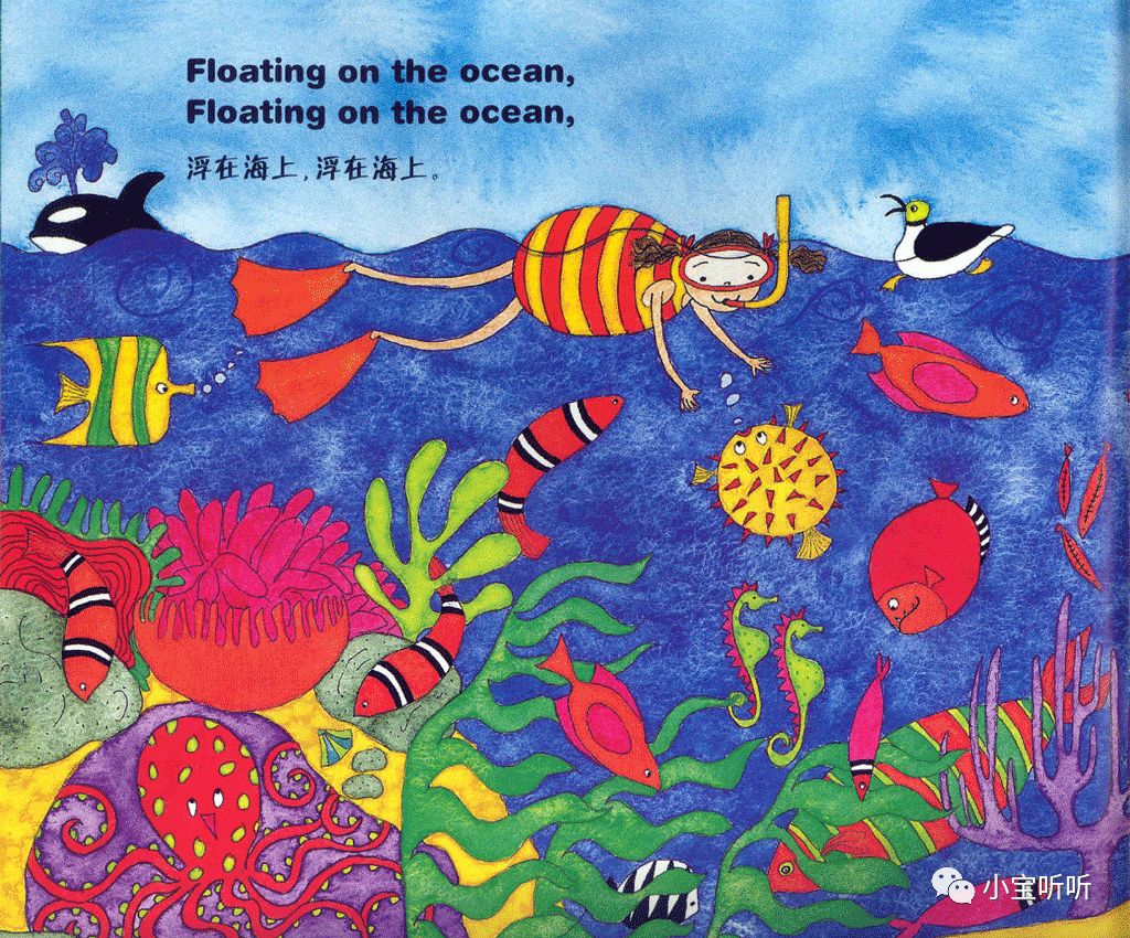 这是一本适合亲子边唱边跳的绘本,美美的画面,丰富鲜艳的颜色,好像一下子把我们带进童话世界呢。
