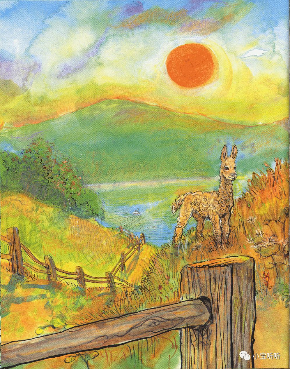 他问啊问,找啊找,找到朝阳都变成了夕阳,终于,他的朋友Llyn,另一只羊驼给了Lloyd满意的答案。小羊驼终于找到了自己的妈妈,依偎着进入了梦乡。