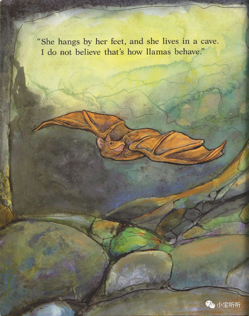"She hangs by her feet,and she lives in a cave. I do not believe that's how llamas behave."
