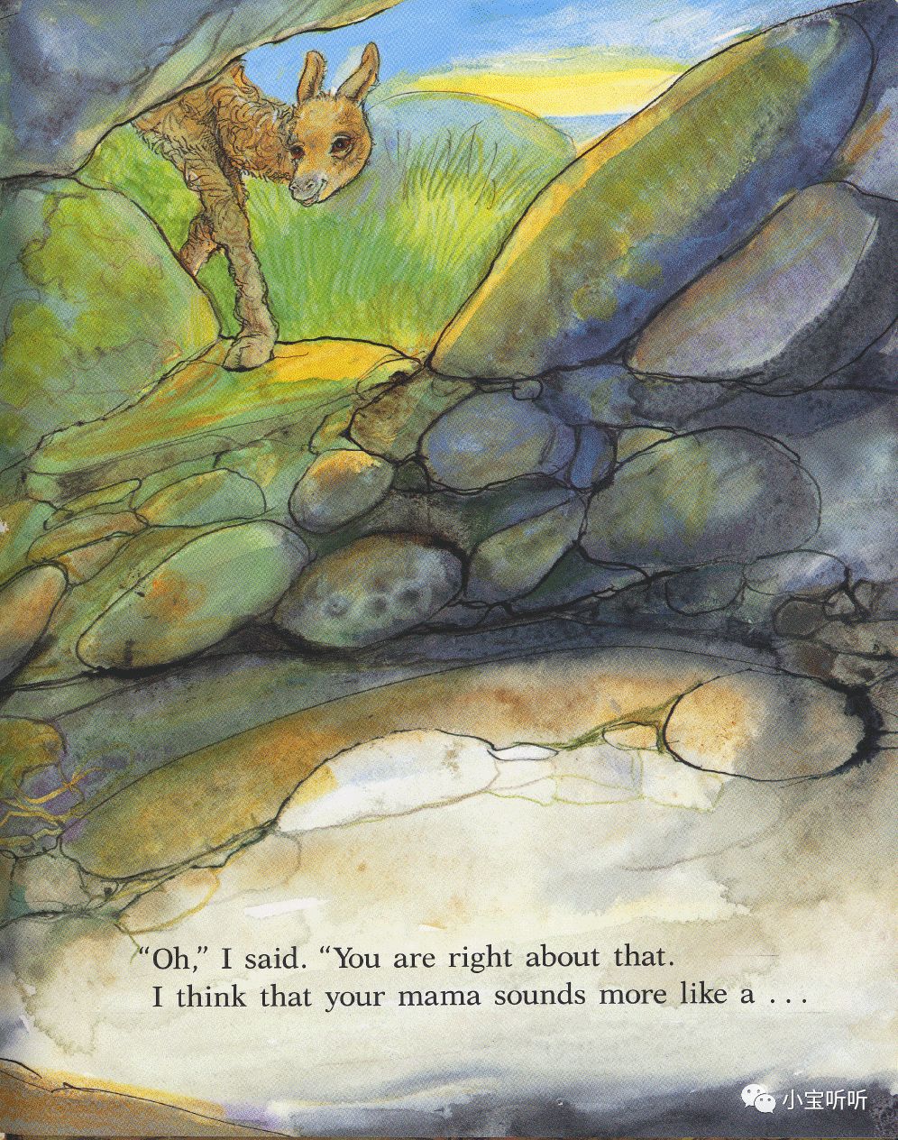 “噢,”我说。“你说的没错。我觉得你的妈妈听起来更像一只...”