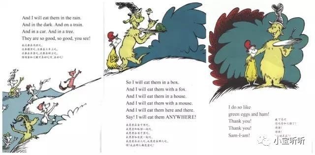 《The Green Eggs and Ham》的创作源于Dr.Seuss和一位朋友打赌,能否用50个单词写成一个故事。于是便有了这本50个单词组成的脍炙人口的书,并成为苏斯博士韵文诗文的经典代表!